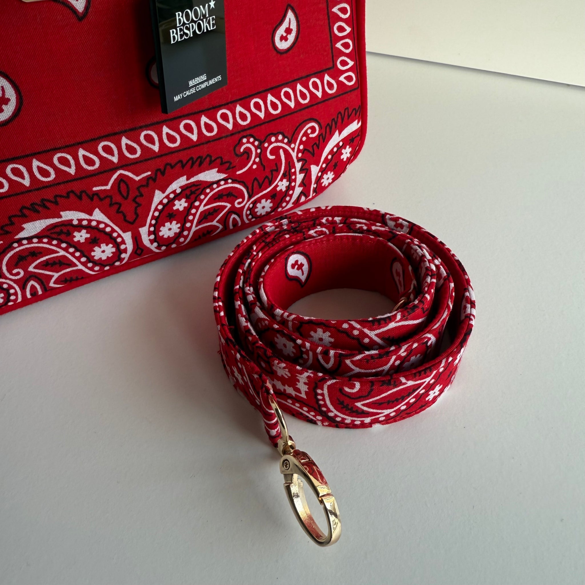 Finished with gold hardware, the bag arrives in a handcrafted Boom Bespoke bandana dust bag and our signature Boom tag -removable or worn as a charm for added fun.