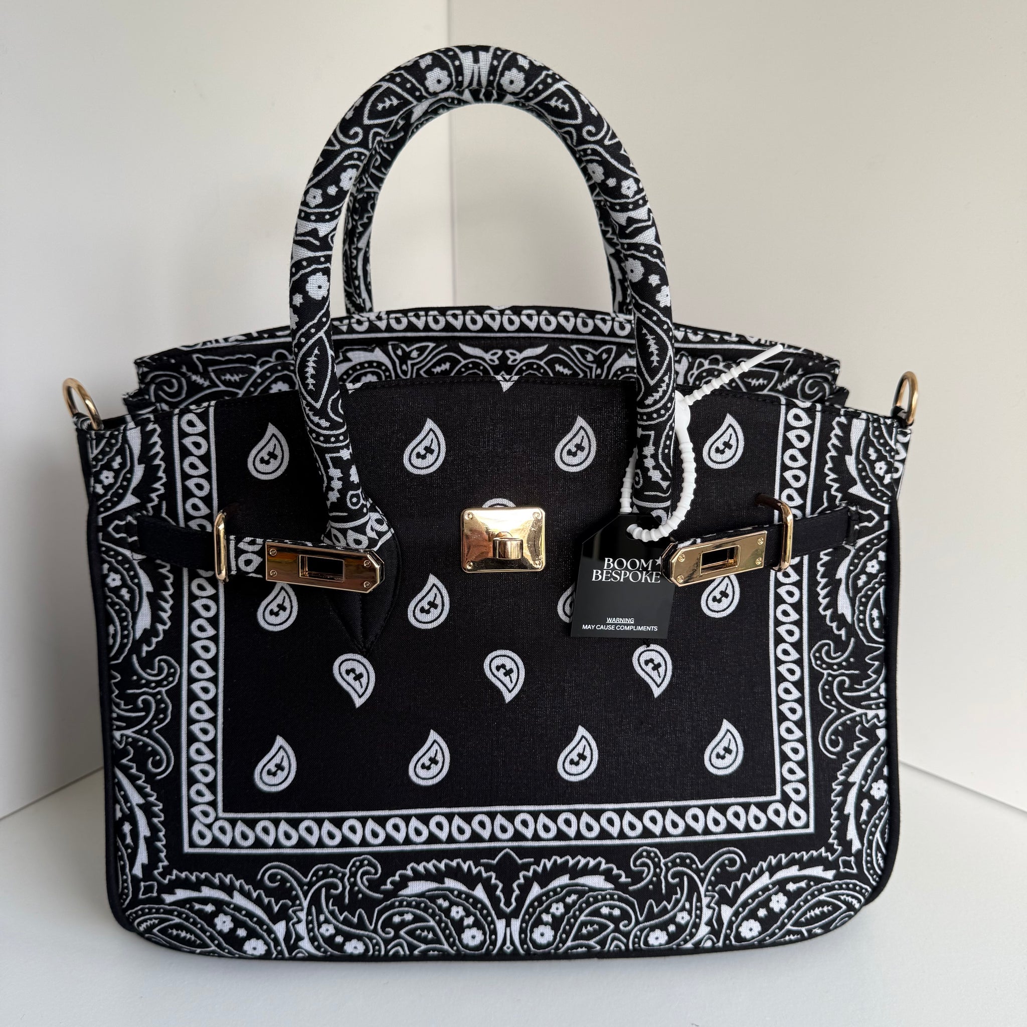 Finished with gold hardware, the bag arrives in a handcrafted Boom Bespoke bandana dust bag and our signature Boom tag -removable or worn as a charm for added fun.