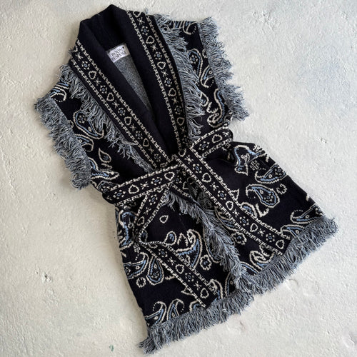 PREORDER ‘MIDNIGHT’ BANDANA KNIT BELTED LONGLINE SLEEVELESS CARDIGAN