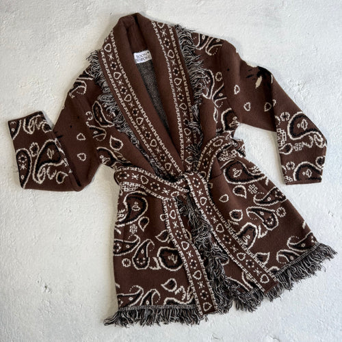 PREORDER ‘ESPRESSO’ BANDANA KNIT BELTED LONGLINE CARDIGAN