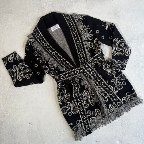 PREORDER‘MIDNIGHT’ BANDANA KNIT BELTED LONGLINE CARDIGAN