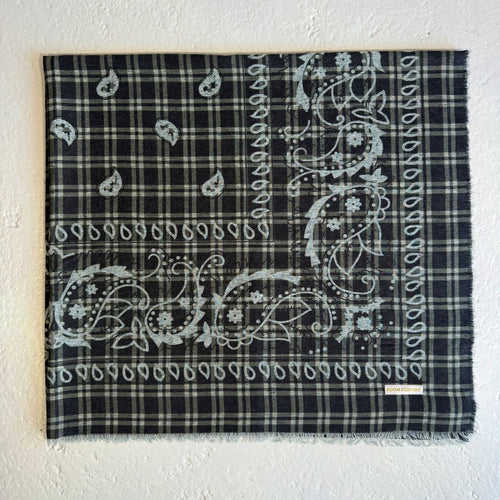 ‘CHARCOAL’ BLACK CHEQUERED FINE KNIT BANDANA SCARF
