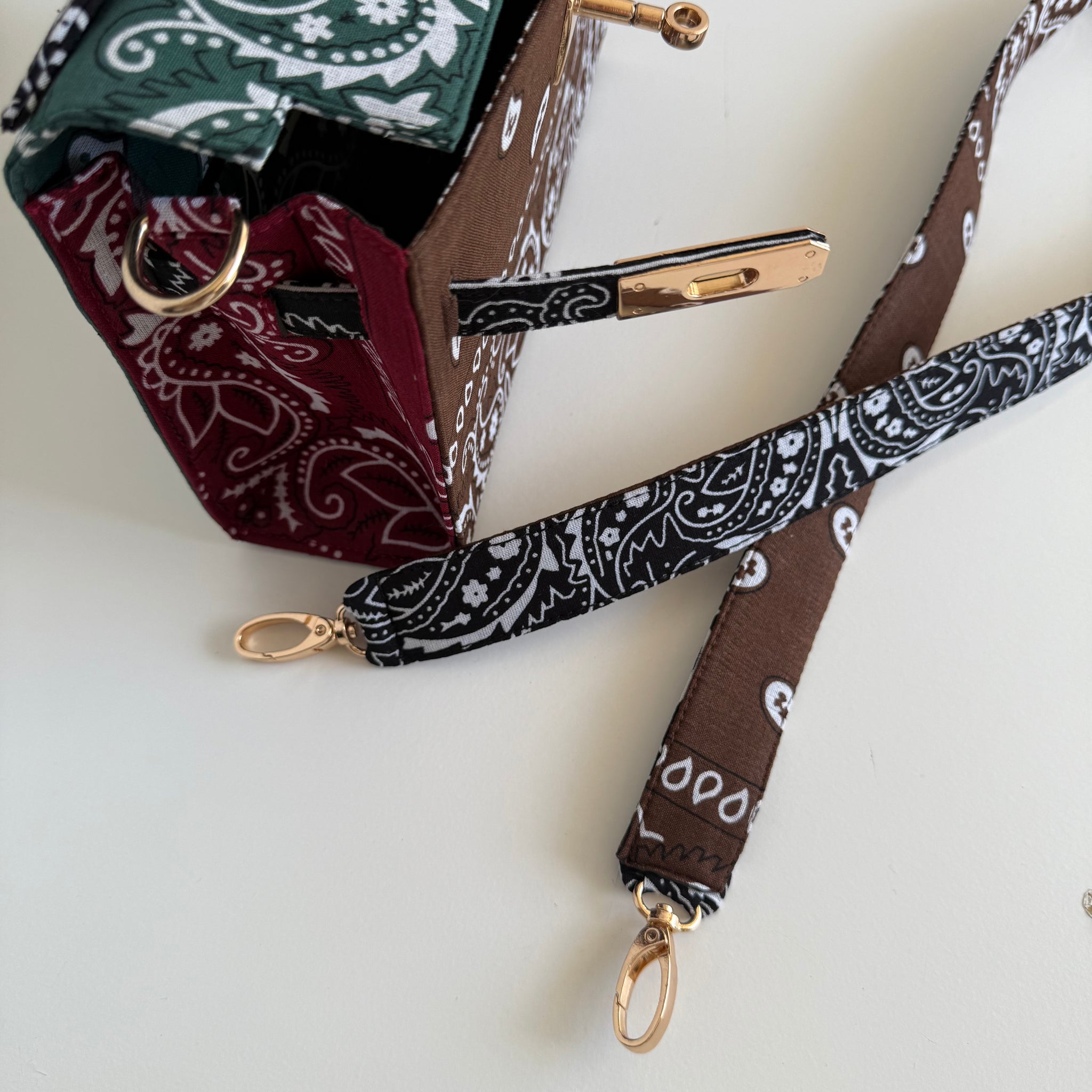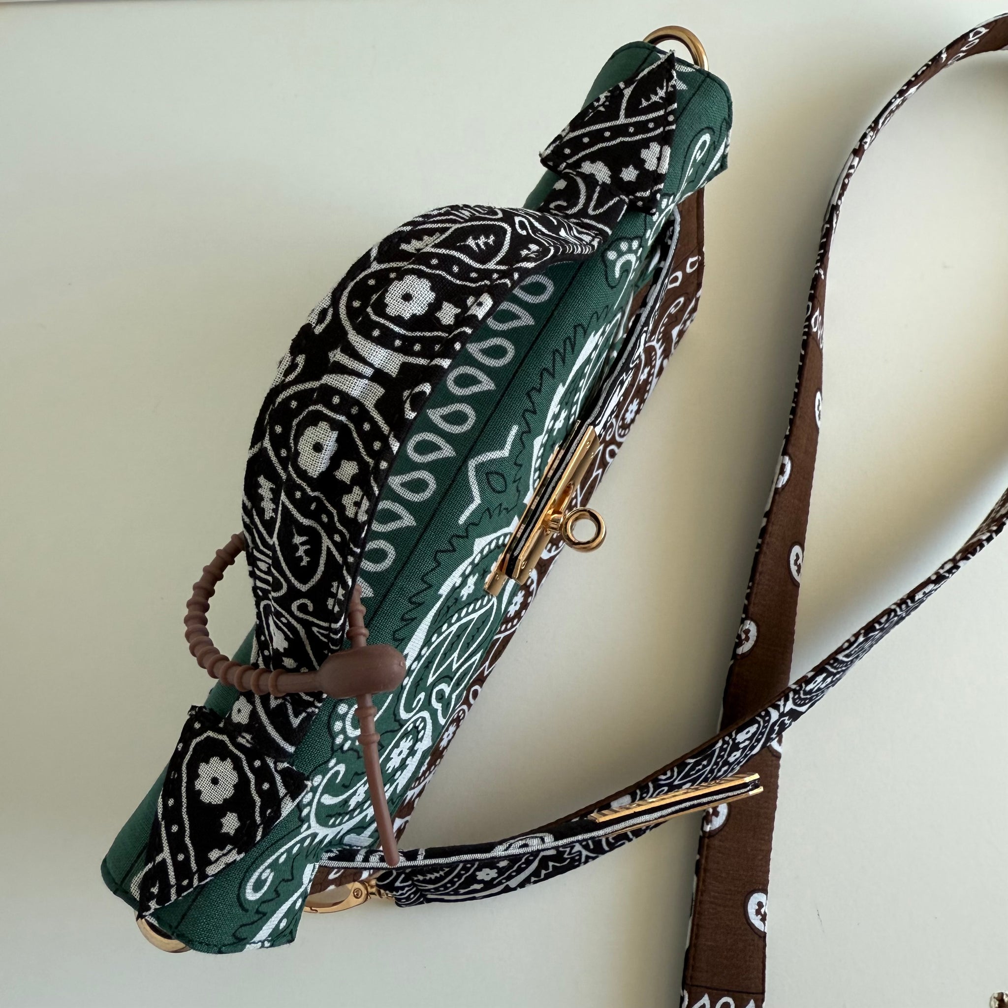 Nightcap a mix of black, brown, green & burgundy Boom bandana bag mini size