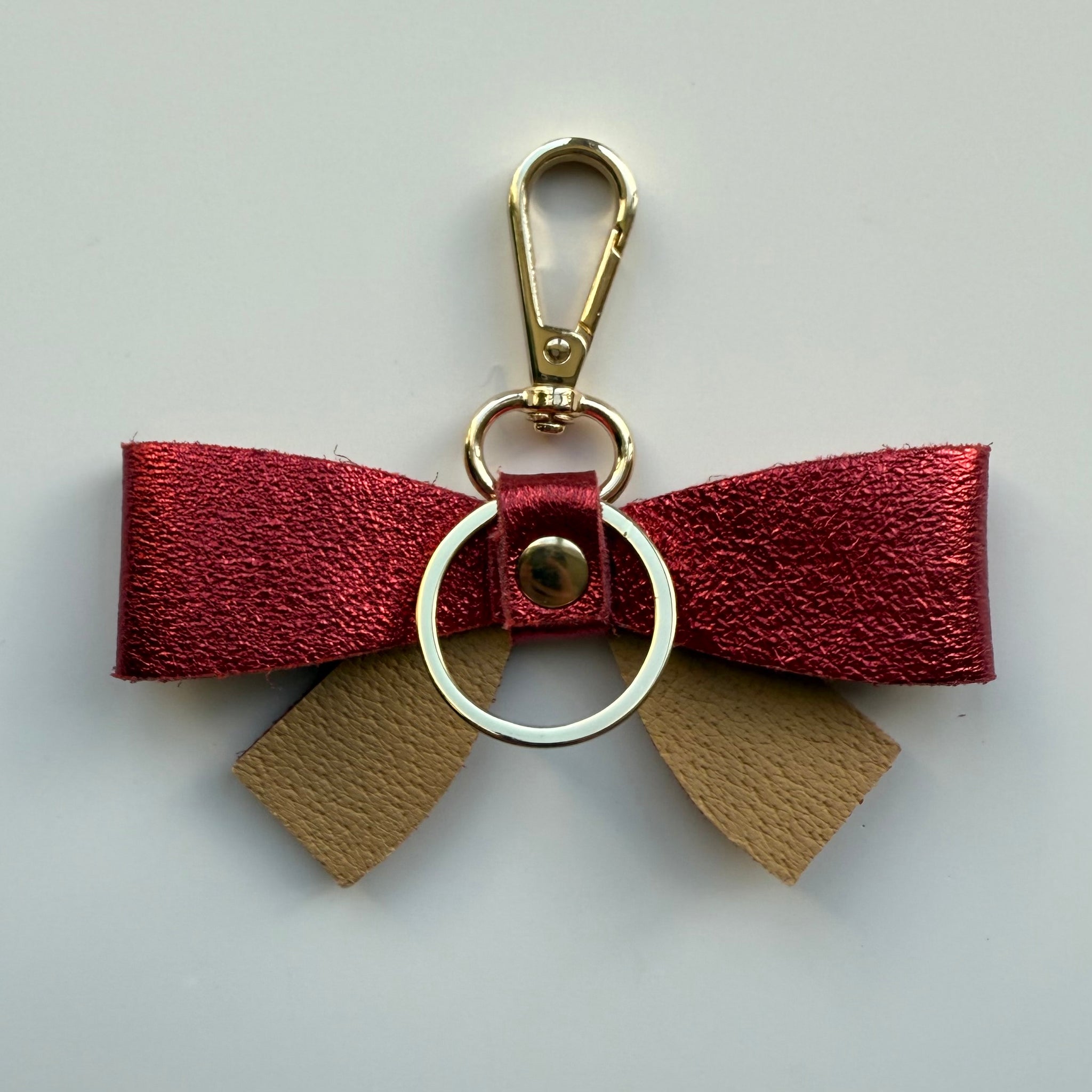 Real leather bow keyring with clip so can also be worn as a bag charm